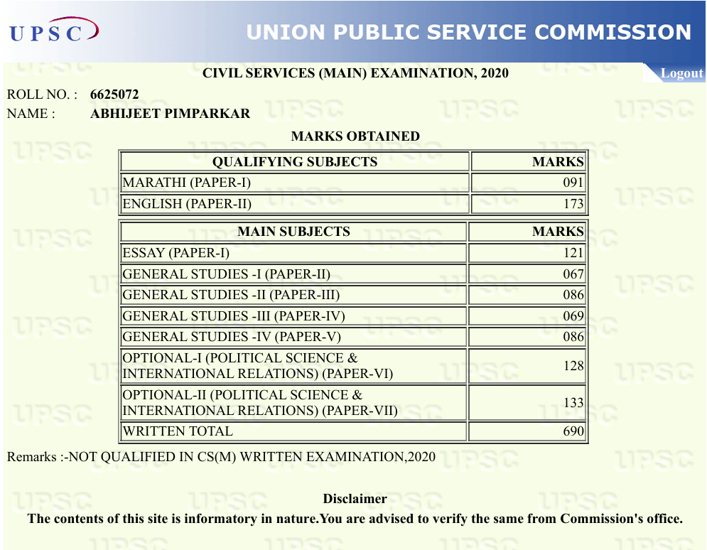 If you see both marksheets above, I got less marks in GS 1- 3 both the times. This was largely due to the fact that I hadn’t studied them from Mains perspective at all. Further, at that time, I was also not aware about the importance of subjects like Society, Social Justice, Governance and Internal Security – which, when combined together are as good as one whole paper (250 marks). I realized about their importance only after compilation of our Mains PYQ Book and the data based analysis of PYQs.
