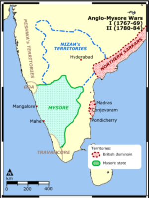2] There was also a direct threat to British trading interests in Mysore from the actions of Haider Ali and Tipu Sultan such as