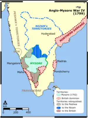 4] The failure of Mysore to establish a strong regional alliance allowed the British to further expand their presence by joining hands with Marathas and Hyderabad.